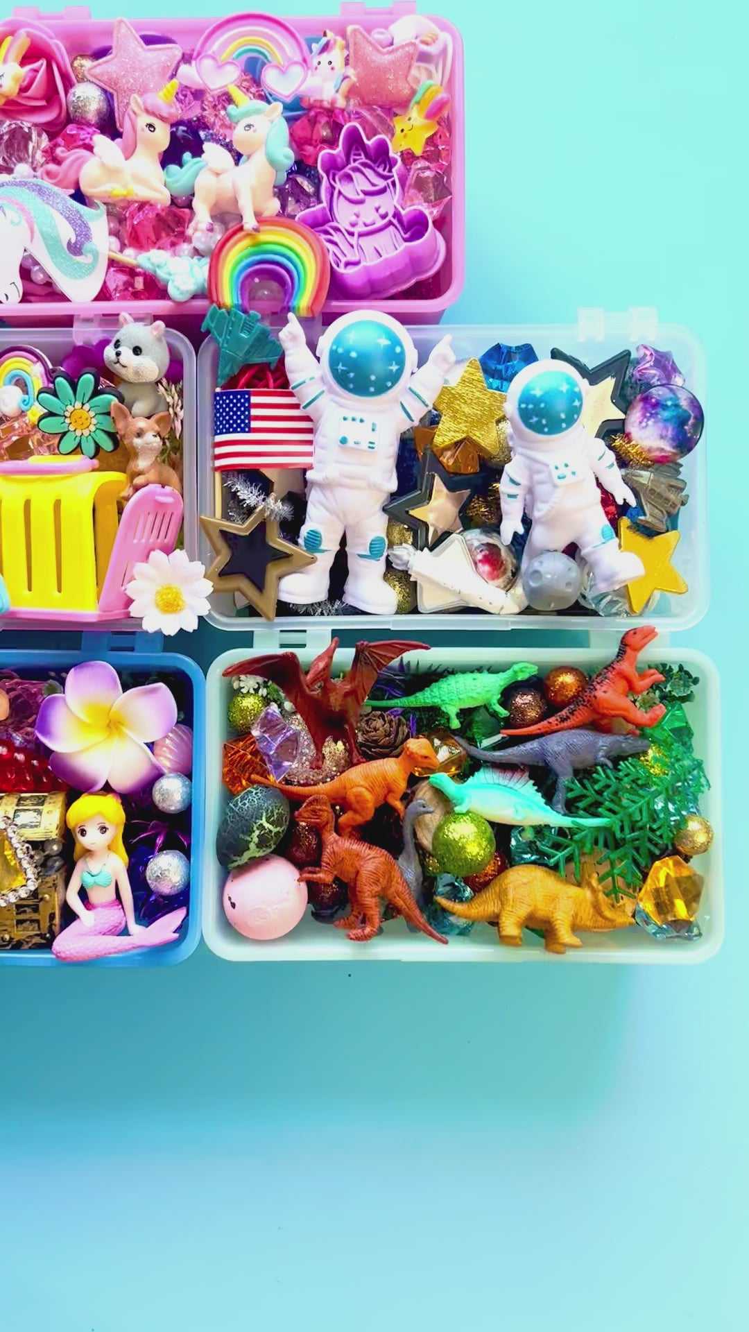 Our Play dough kit boxes will take your kids on a magical adventure! Filled to the brim with perfectly picked items and 3 colors of soft, squishy, non toxic play dough to match each theme- the kids will be literally asking to play every day!!